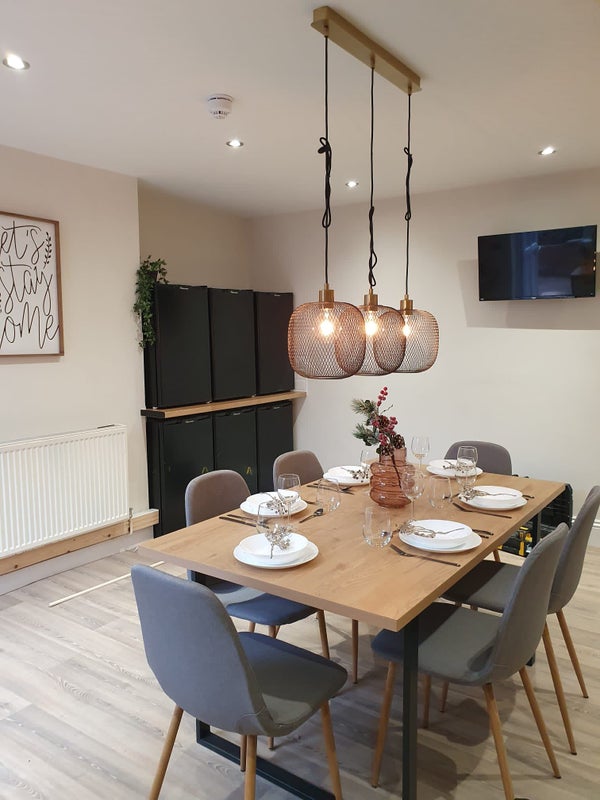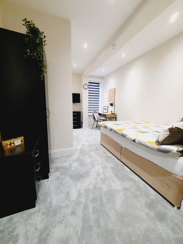 Each room has its own bed, wardrobe, chest of drawers, desk, chair and bedside cabinet. The en-suites have a shower enclosure, WC and sink. The rooms have access to a large shared kitchen and dining area and a fridge freezer for each tenant. There are 2 sinks, 4 washer/dryer, 2 cooking ranges, microwave, kettle and toaster amongst other items. There is CCTV covering all internal communal areas including the entrance for your safety and to protect our house. Only for single occupation in each room (I cannot stress this enough, the building is under licence by the local authority and our insurance reflects the same and we are strict on this)