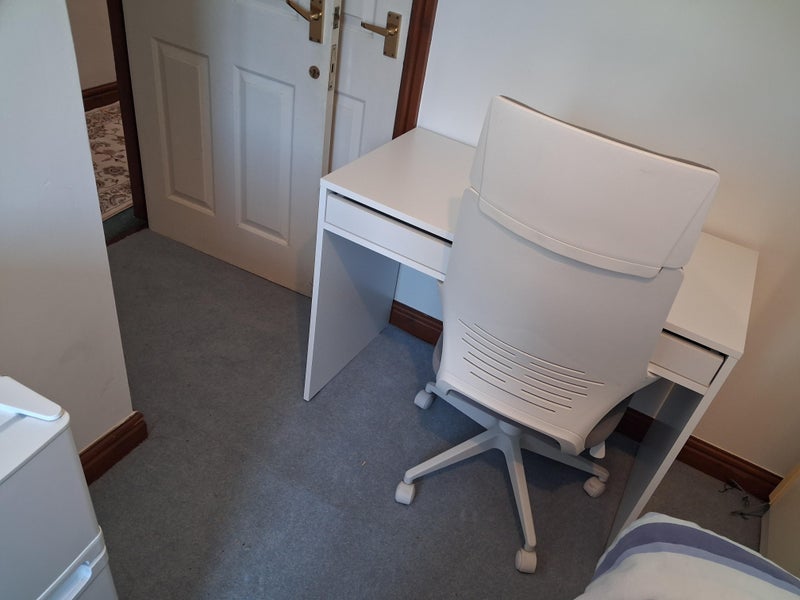 This is a relatively small room but is an excellent quite place to study with excellent broadband. The bathroom is only shared with one other person who is a busy working professional and there is a large lounge for socialising and a good kitchen. The building is close to the town centre and transport to the universities and hospital and just a few minutes walk. All bills are included.