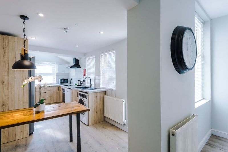 The bedrooms are lovely and furnished. There is a nice living room and kitchen which will be good to use. Bedrooms have double beds in