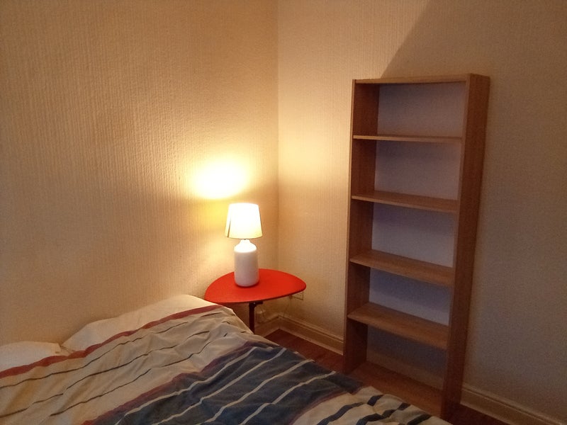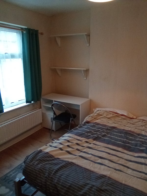 Situated at Alexandra Road, Lancaster, this is a sizeable room with a double bed, wardrobe, chest of drawers, bookcase, mirror, bedside table and lamp. All bills are included- Broadband too. The landlord (myself) is a friendly British man in his late 40s who works and is out much of the time. There is a shared living-room, and the kitchen has cooker, microwave and washing machine. You have your own fridge, separate from mine. The bathroom has a bath only: no shower. The house is situated 20 mins walk from Lancaster City centre and 25 mins walk from the train station. There is a corner-shop and off-licence about 6 minutes walk away, and bus-stops nearby too. There is also a space for your bicycle. It's a quiet street, as this end is a cul-de-sac and not much traffic. On-street parking, but it's usually quite easy. I can provide bedding and crockery, kitchen items etc if you need them.