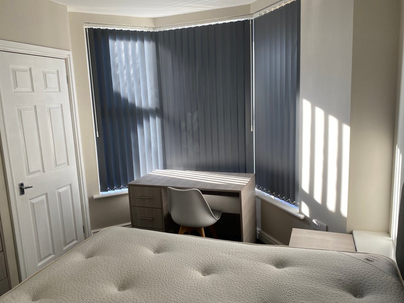 It has spacious rooms with double beds, desks, plenty of wardrobe space and ensuite bathroom. The kitchen and lounge is open plan which gives the room a spacious feel.