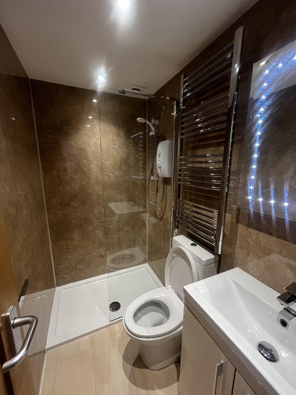 Luxury house share in Lancaster city centre comprising 3 modern en-suite bedrooms, 1 bedroom with a private bathroom and a shared living, kitchen and dining area.