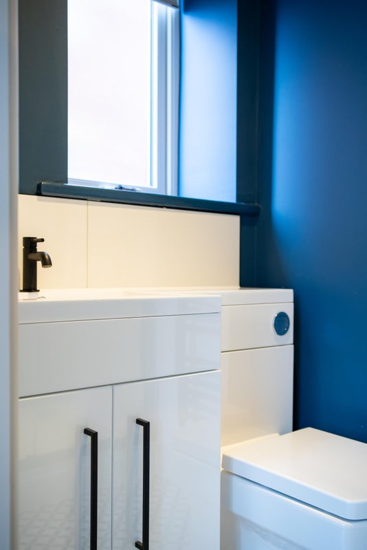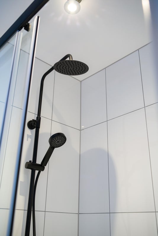 Sleek, modern en-suite featuring a powerful rainfall shower, stylish fittings, contemporary vanity, and a clean, hotel-style finish throughout.