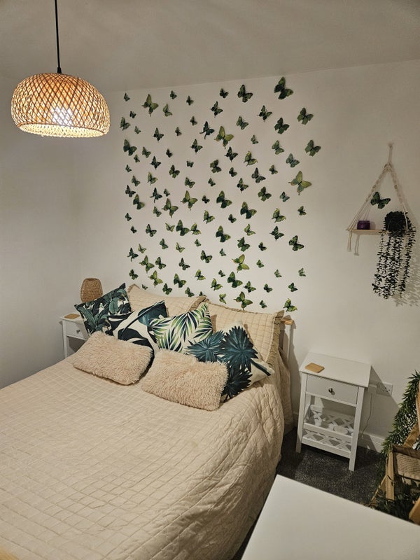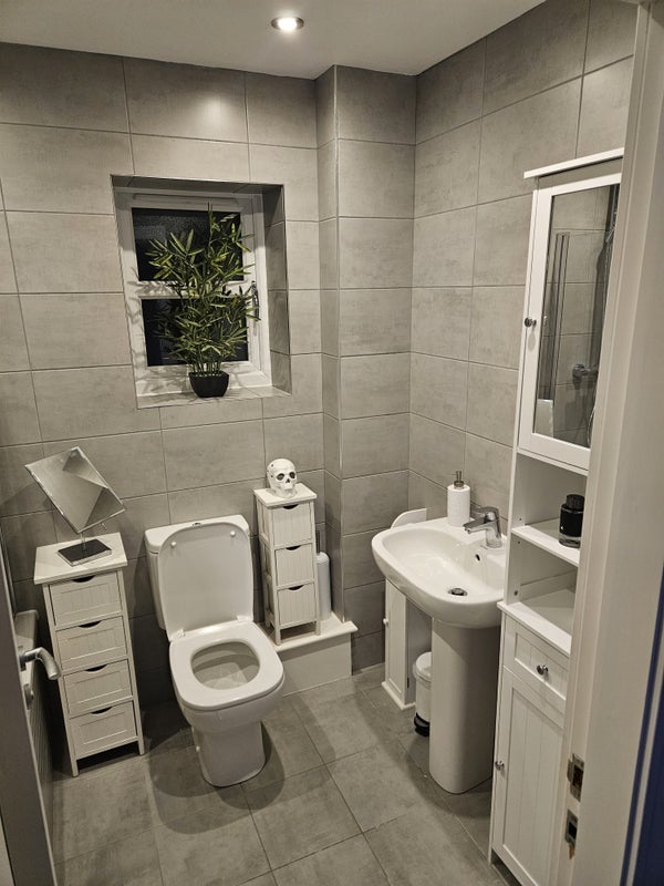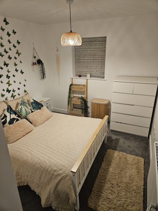 The house: 3 bed semi detached new build, very modern, clean and tidy. Downstairs stairs toilet, main bathroom and my bedroom has en suite, so main bathroom would practically be yours. Drive way for 2 cars.