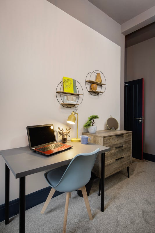 - Furnished to perfection with a small double bed with storage underneath, high quality mattress, wardrobe, bedside and a desk– perfect for relaxing, organising, or working from home.