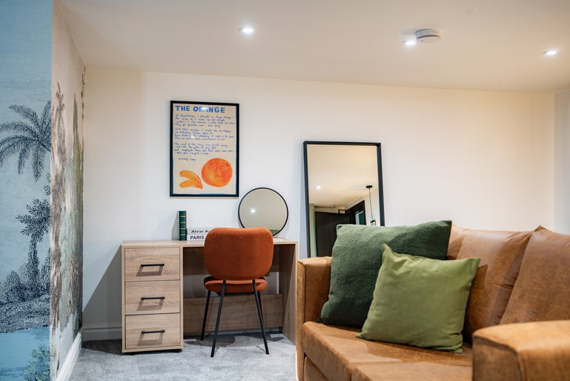 Your cozy self-contained flat 🛏️ with a comfy double bed, ensuite, wardrobe, side table, and kitchenette — everything you need for a restful stay.