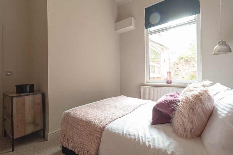 A bright, stylish space with a double bed, wardrobe, desk, and bedside table - everything you need to move straight in.