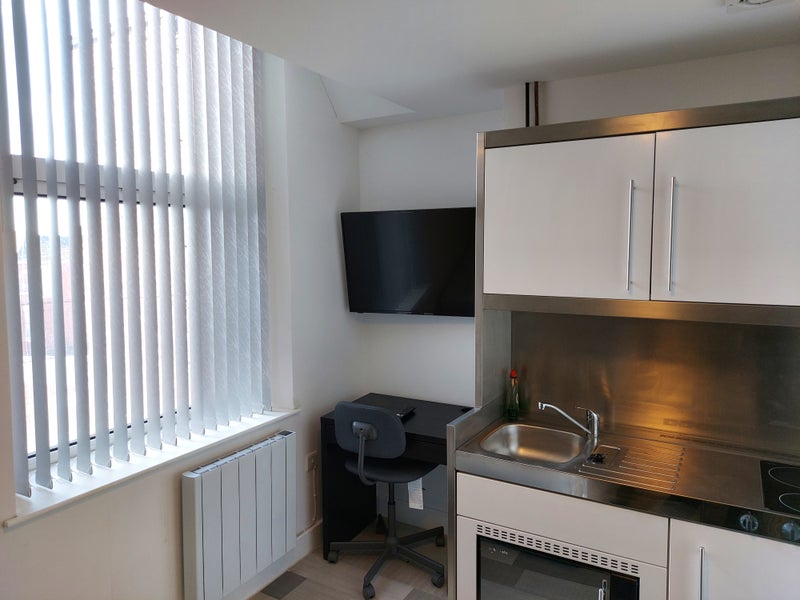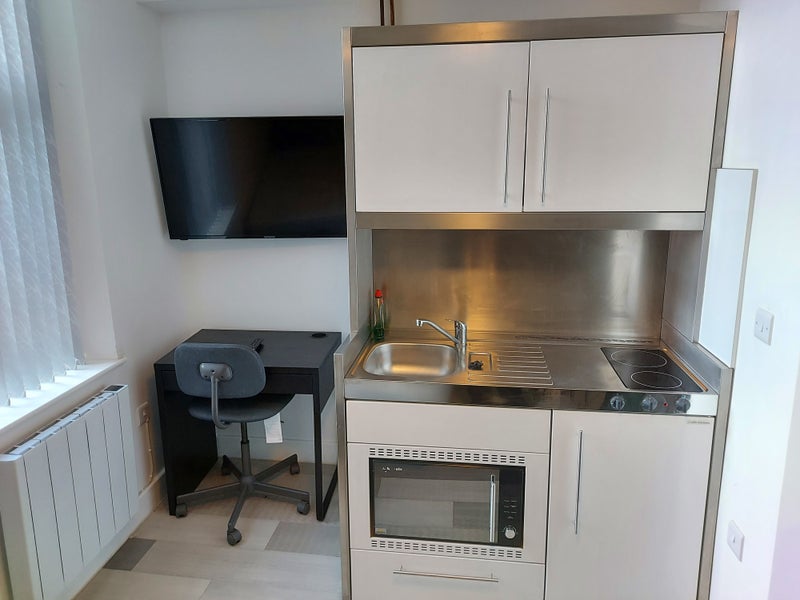 The studios offers comfortable living with bed, desk and wardrobe included.