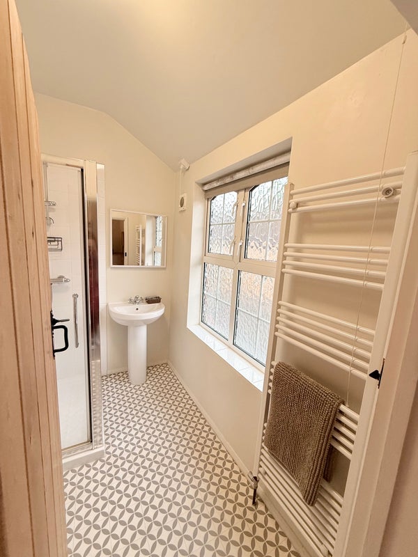 Bright double room with private en-suite. The house is in a beautiful old village with lots of little cottages. There is a large garden outback full of flowers with a table and seating area (photos to come)