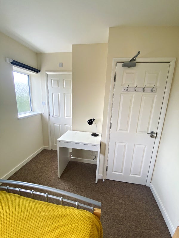 - Fully furnished with double bed, desk, chair, wardrobe, and storage