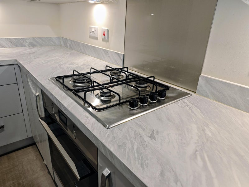 - Modern open-plan integrated kitchen and living space in the ground floor