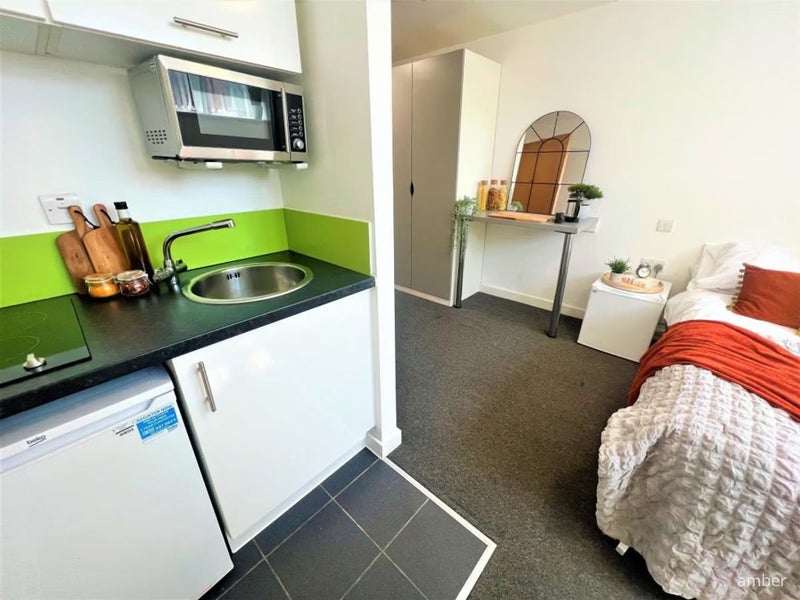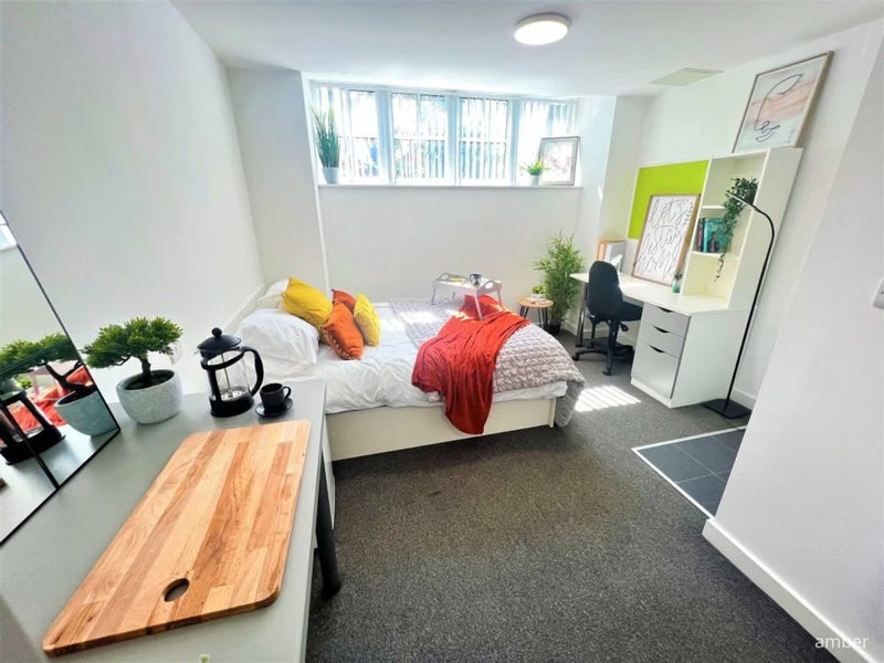 A studio on Tudor road , very spacious and cheap. It’s very close to Tesco and walking distance to De Montfort university. The common room is really big and they have a tv. A fridge and a freezer , a 3/4 bed and a wife window , a lot of wardrobe space and aesthetically pleasing bathroom as well as being spacious. It’s very quiet and calm and for students it’s good as you’re able to revise with peace and quiet in term time.