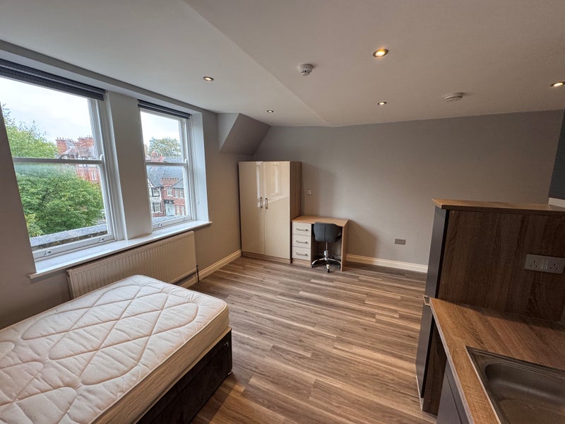 We are delighted to offer this newly decorated spacious second-floor studio flat on Upper New Walk in Leicester. This delightful flat is suitable for a single professional. The accommodation offers a large open plan kitchen/ living area which is furnished and includes kitchen appliances. A modern bathroom suite with shower enclosure and heated towel rail.