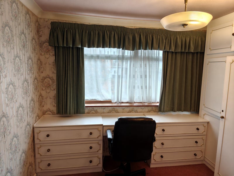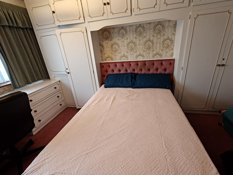 Big furnished room with inbuilt cupboard and drawers, laptop table. Separate toilet, parking, shared kitchen, internet etc.