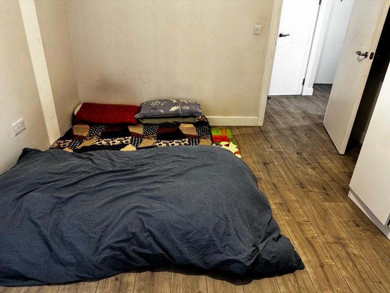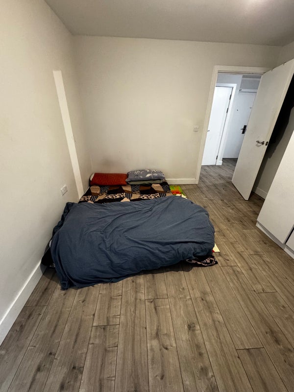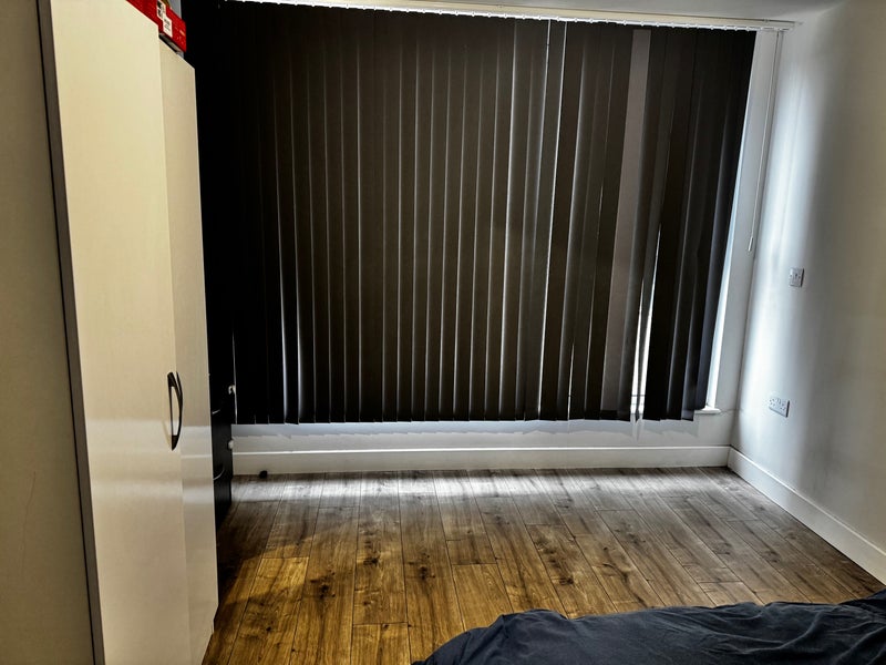 The bedroom includes heating, lights, blinds, and a comfortable mattress. A bed frame/cot can be arranged upon discussion if required.