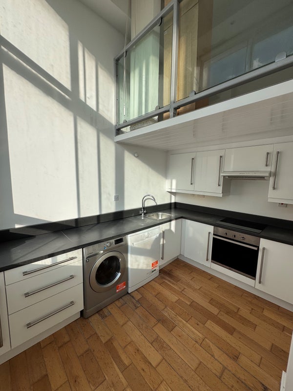 The apartment offers an entrance hallway with intercom camera system. Well presented bathroom with shower over the bath and the spacious living room is positioned to the front of the building with large windows offering a vast amount of light. The kitchen comprises of oven, ceramic hob, extractor hood, washer dryer, dishwasher and integrated fridge freezer. To the first floor there are two double bedrooms with spacious integrated wardrobes. This is an open plan design apartment with many great features!