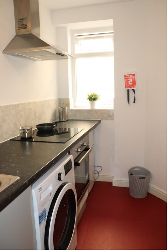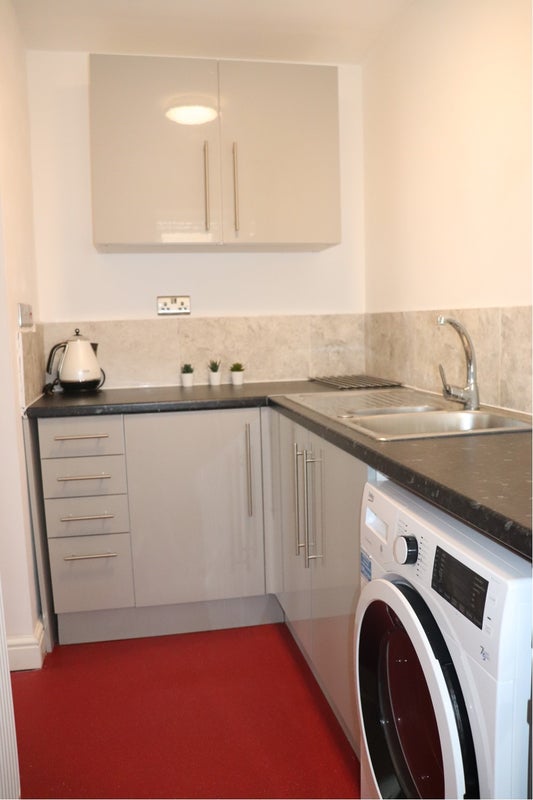 Your private high-gloss kitchen includes an oven, hob, extractor fan, fridge/freezer and plenty of storage. You’ll also get free access to our on-site laundry room.