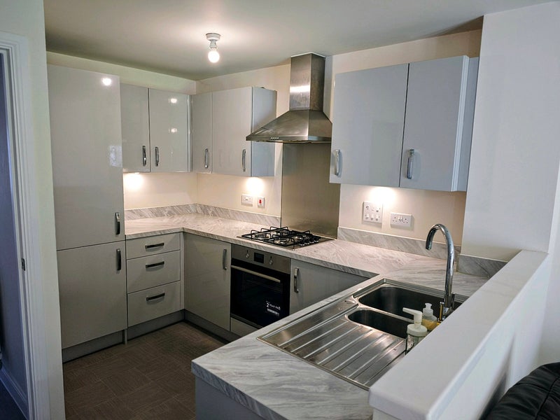 - Modern open-plan integrated kitchen and living space in the ground floor