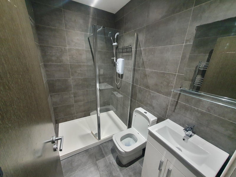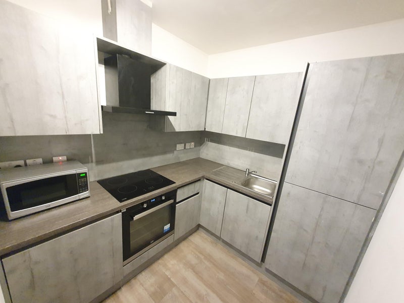 The flat is fully furnished with a double bed, wardrobe, desk and chair, a 2 seater sofa and LCD TV. Private bathroom with walk in shower and a modern fitted kitchen, offering lots of storage space, integrated fridge freezer, washing machine, electric cooker, oven and microwave.