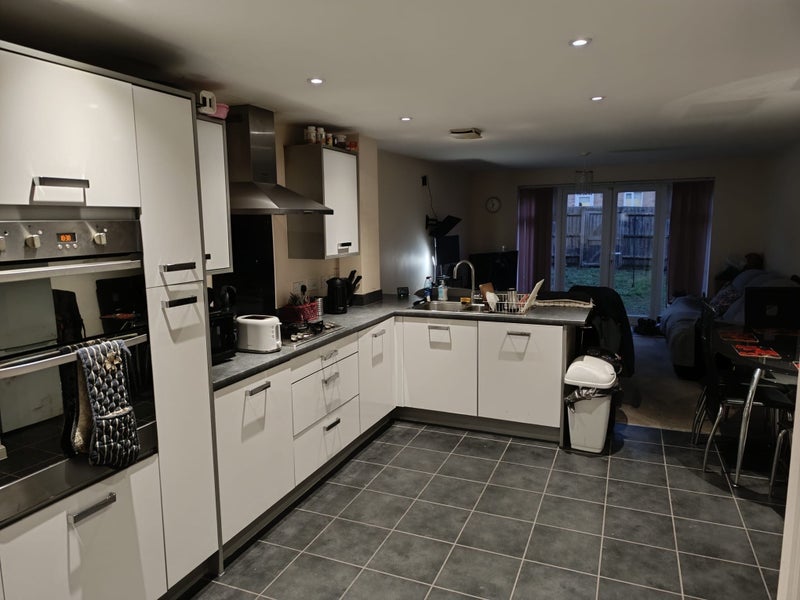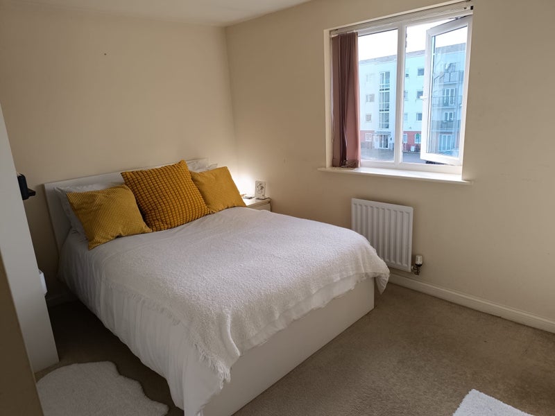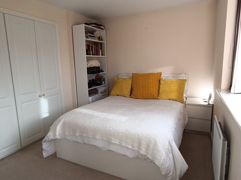 This is a double room with wardrobe, double bed, mattress, big chest of drawers, bedside drawers and bookcase. Suitable for working professionals. This is a 3 bed rooms property with, fully fitted kitchen, with a parking space.