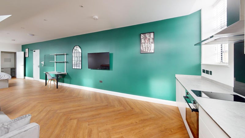 There's a walk-in closet, a small electric stovetop, oven, fridge with freezer compartment, hoover and a washing machine. The main furniture belongs here (ie. bed, desk, dining table and TV as shown in the main photos), but I will be taking my own bookshelves and additions also pictured in the evening photo so you'll be able to make the space your own.