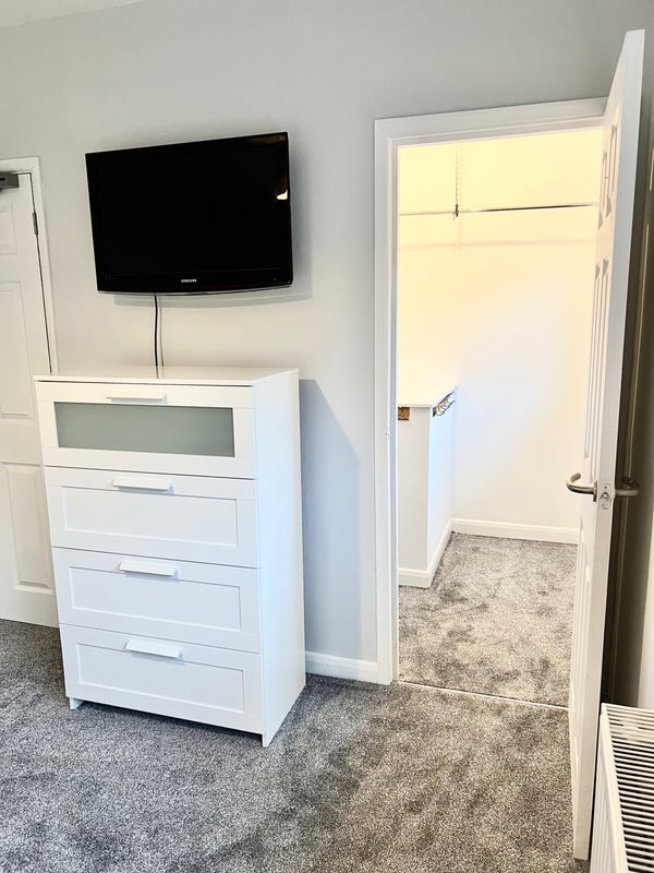 **Close to Magna Park** We have a very large furnished double room available in a recently renovated, spacious HMO in Lutterworth town centre. The room has a double bed with storage underneath, a large walk-in wardrobe, a chest of draws and a bedside table. The pictures in this advert are of the actual room itself. All bills are included, there is a large communal shared kitchen/diner and lounge, also front and rear gardens. There are 2 large bathrooms shared between the 4 bedrooms, the communal areas are cleaned weekly. It is a HMO, so no awkwardness of living in somebody else’s house. There are currently 3 other rooms let out to 3 respectful, clean and tidy working individuals. Please message for more details, viewings are welcome