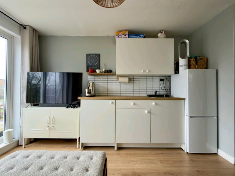 Upstairs 30 square metre studio apartment with en-suite available to rent in Market Harborough in a friendly, safe and peaceful neighbourhood.