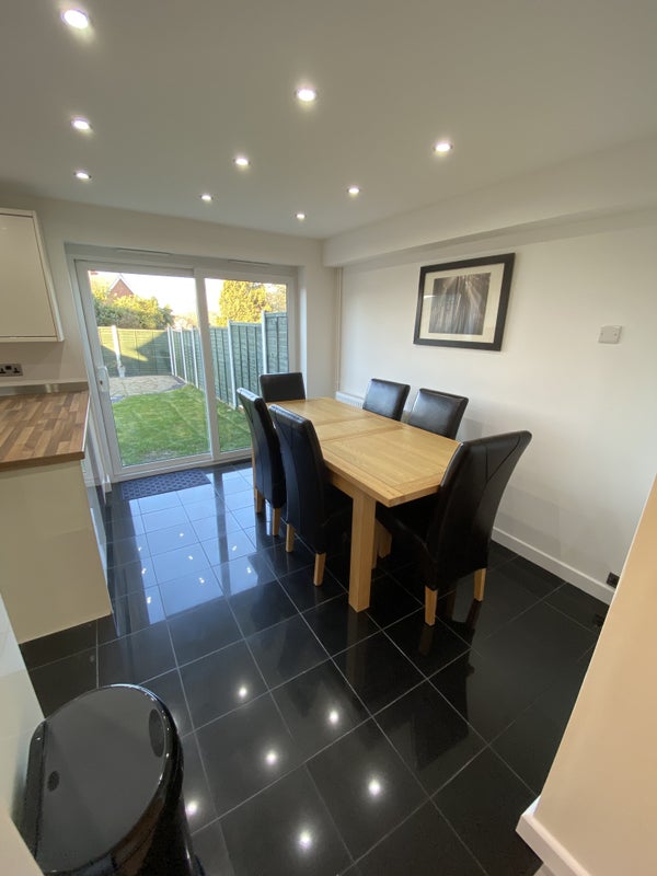 Fully equipped shared kitchen and diner with American fridge freezer with ice Machine, washing machine and a dryer.