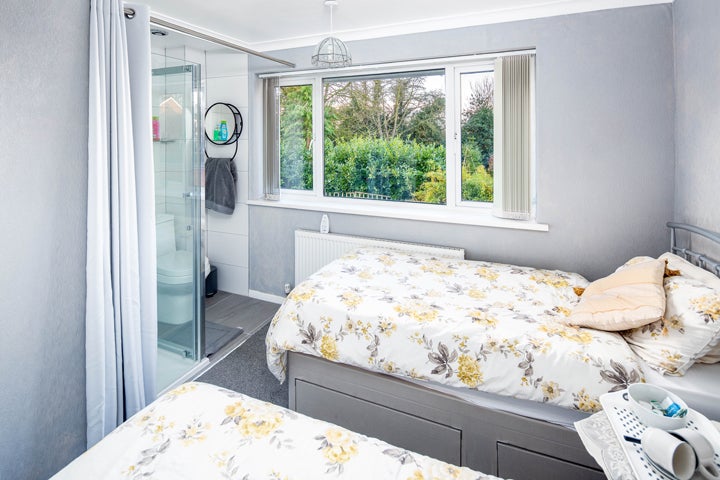 Twin room with en suite. Use of shared lounge, breakfast room and kitchen. Off road safe parking, quiet cul de sac location. Use if patio and garden. Quiet village location with easy access to shops, M69/M1 and A5.