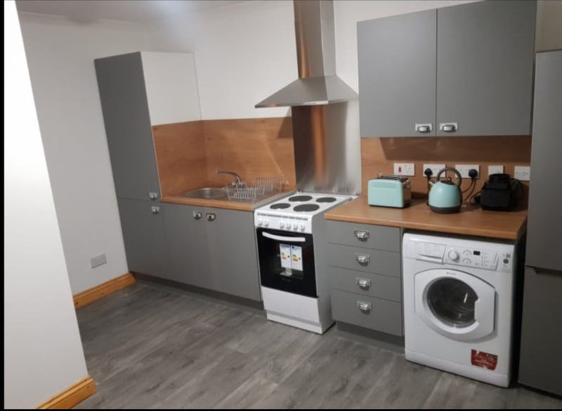 Clean modern kitchen and shower room. .