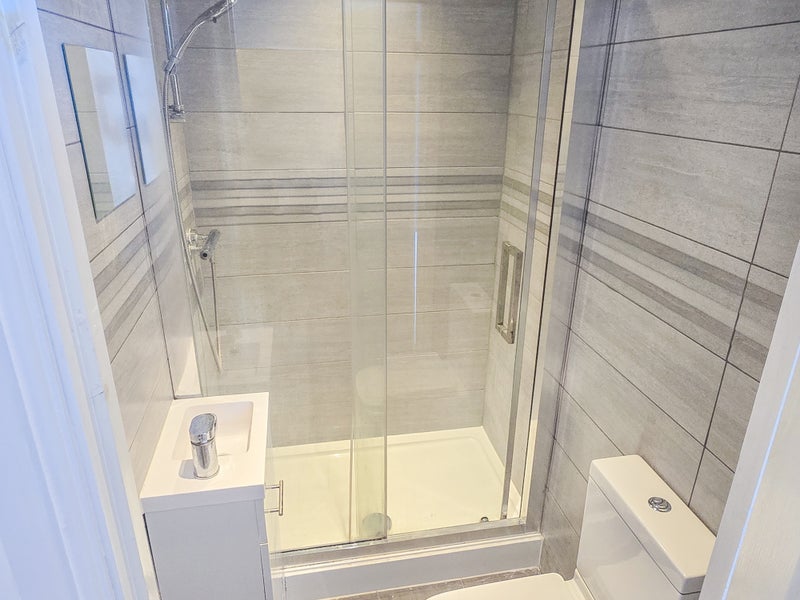 The double room available is situated on the first floor of the property. The modern bathroom features a shower, toilet and wash basin. A double room with a double bed, mattress and mattress protector, double wardrobe, chest of drawers and bedside table. TV point and USB sockets.