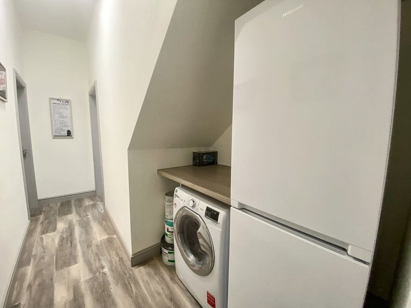 Laundry facilities and an extra fridge/freezer are conveniently tucked away in the hallway.