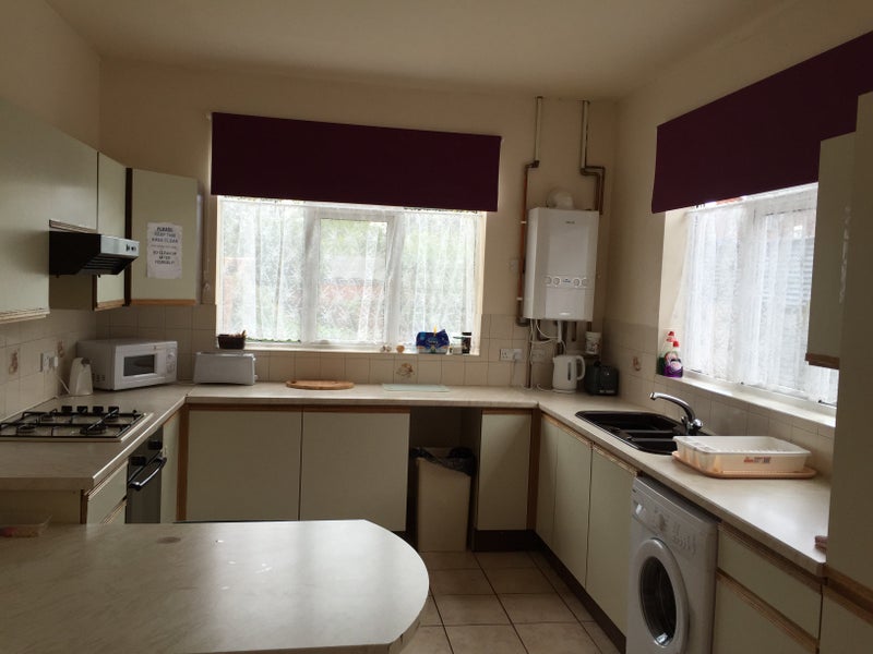 Spacious kitchen with washing machine, lounge with TV, smoking area, off road parking, wifi, three shower rooms and five furnished bedrooms with sinks. Gas central heating. This house has a cleaner to clean the communal areas on a weekly basis. We are looking for a considerate, tidy person who works.