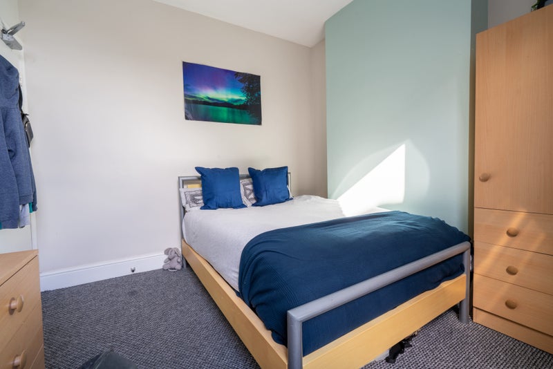Each of the six spacious double bedrooms comes fully furnished with a bed, desk, chair, wardrobe, and chest of drawers, providing a comfortable space to study and relax. The property also features a large open-plan living area that’s ideal for socialising, a modern, fully equipped kitchen, and a stylish bathroom.