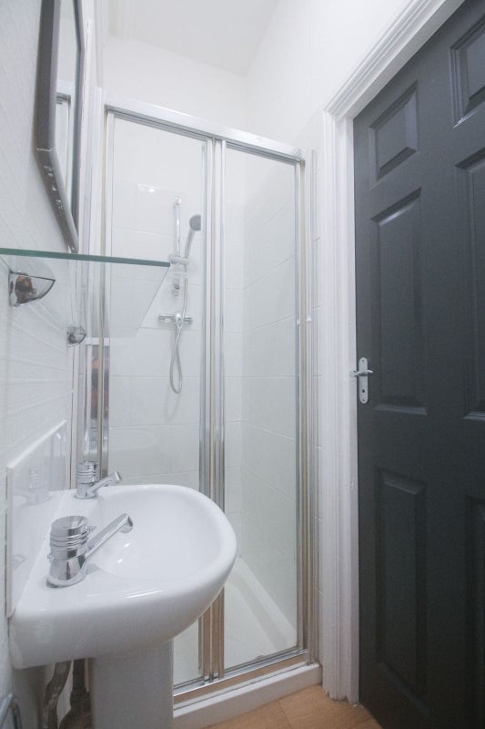 The spacious Double Ensuite room comes fully furnished with a double bed, wardrobe, chest of drawers, bedside cabinet, and a private fridge freezer.