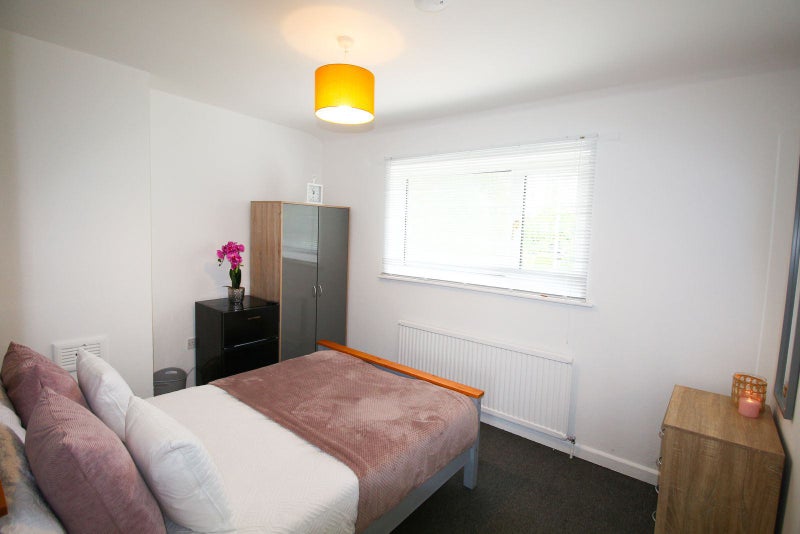 The spacious Large double room comes fully furnished with a double bed, wardrobe, chest of drawers, bedside cabinet, and a private fridge freezer.