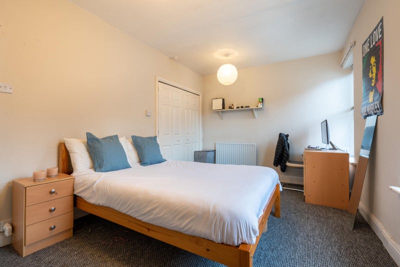 The house features four spacious double bedrooms, each fully furnished with a bed, desk, chair, wardrobe, and chest of drawers — everything you need to move straight in and make yourself at home. The modern open-plan living area and kitchen create the perfect space for relaxing or socialising with your housemates, and the private rear garden offers a great spot to relax or outdoor study sessions.