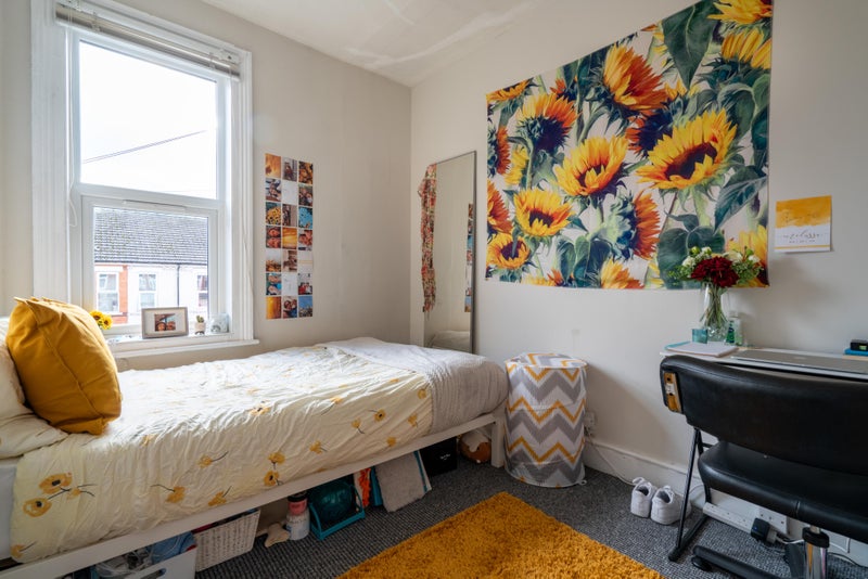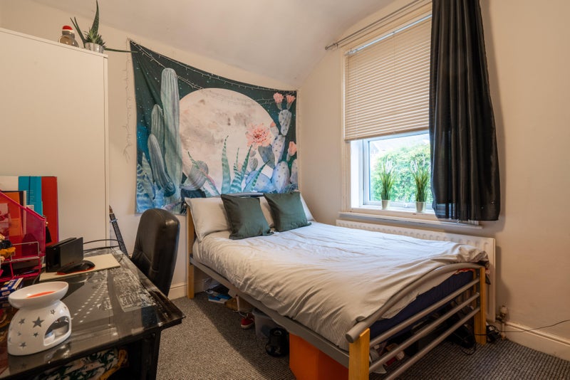 Each of the six spacious double bedrooms comes fully furnished with a bed, desk, chair, wardrobe, and chest of drawers, providing a comfortable space to study and relax. The property also features a large open-plan living area that’s ideal for socialising, a modern, fully equipped kitchen, and a stylish bathroom.