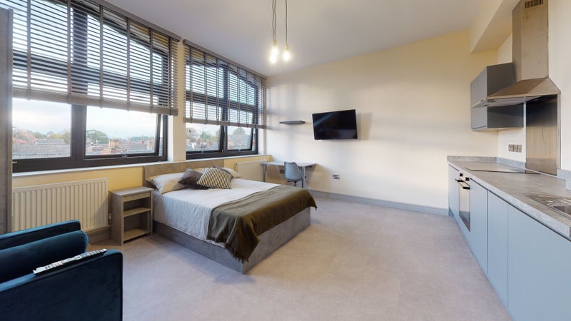 - Fully furnished with a comfy bed, desk, wardrobe