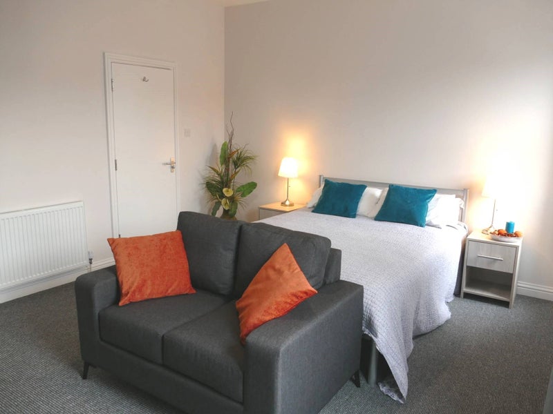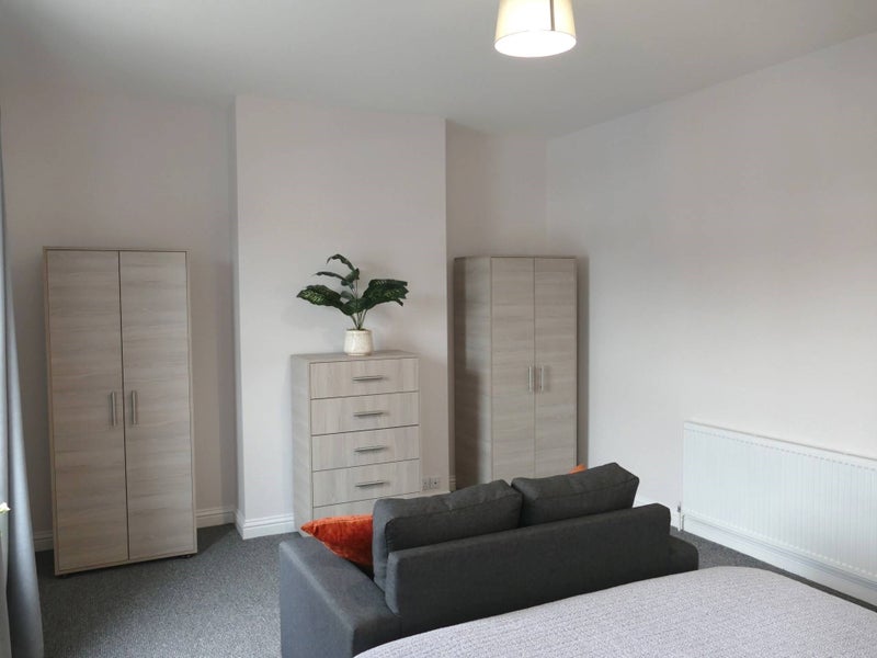 An extra-large double room available now in a large Victorian property with luxury accommodation spread over two floors consisting of 6 bedrooms. Complete with premium designer furniture including chest of drawers, wardrobe, bed side table, bed with luxury pocket sprung mattress and a TV point.