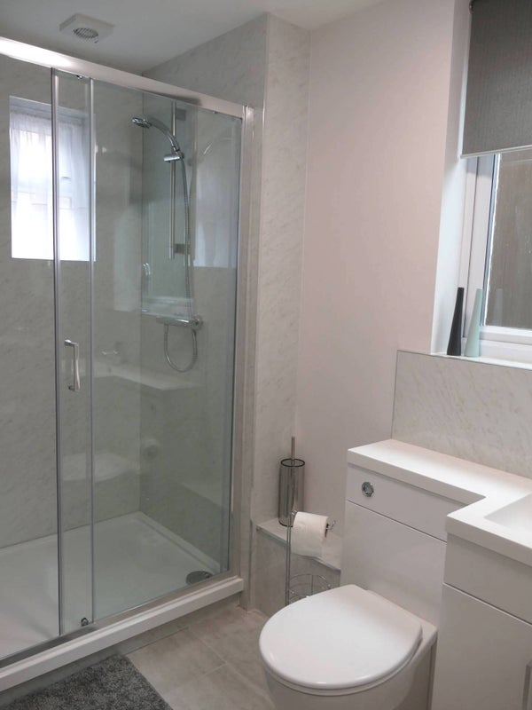 The property boasts two lovely shower rooms fitted with generously sized walk-in showers, vanity units and heated towel rails.