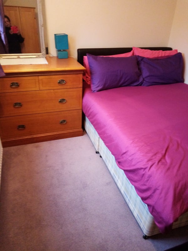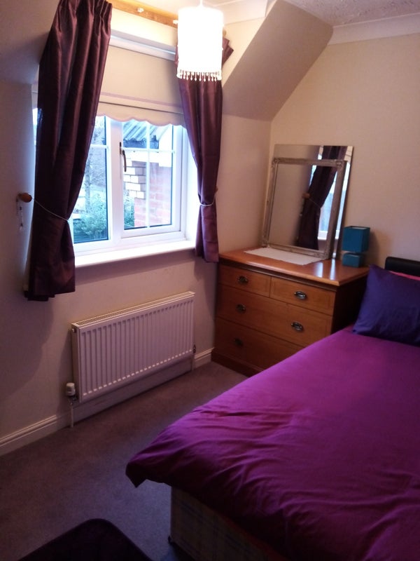 Bed, chest of drawers, wardrobe, chair, bedside table, TV, broadband, washing machine, dishwasher, parking, garden and huge gardenroom/ conservatory. Very quiet area. 10 minutes drive to town centre, 25 minutes walk.