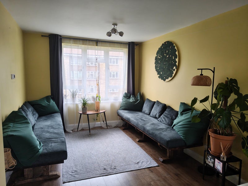 🦚Hi, I’ve got two ‘cutesy’ double rooms going in a 3 bed flat. I’m looking for a un-ironically ‘mindful and considerate’ flatmate. Both rooms are spacious, bright, clean, and tidy. The flat is fully furnished, and reasonable adjustments can be made. There is a shared lounge and diner, with a balcony. There is a bathroom and kitchen. The lounge is separate with a dining and seating area, and a balcony. The vibe is super chill and peaceful.