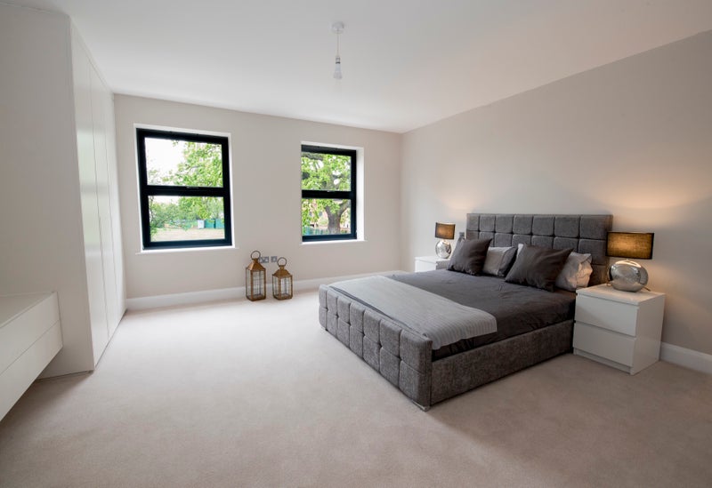 This amazingly spacious room will leave you feeling like you're living in a hotel room. Located on the first floor and overlooking the rear garden this room benefits from getting the afternoon sun. The room comes furnished with a double bed which boasts underbed storage, two bedsides and a wall of built in wardrobes with a gap for a TV or large mirror. On top of this there's still lots of space in the room for a small sofa or armchair plus space for a desk, which is super handy if you need to work from home. Best of all the room has it's own luxury ensuite with lots of mirrored cabinets and a walk-in shower so no morning queues for the bathroom.