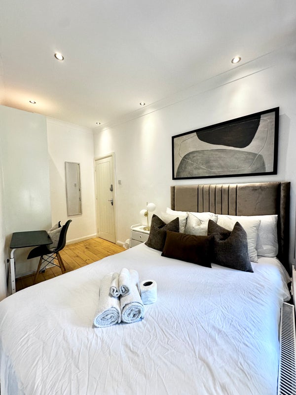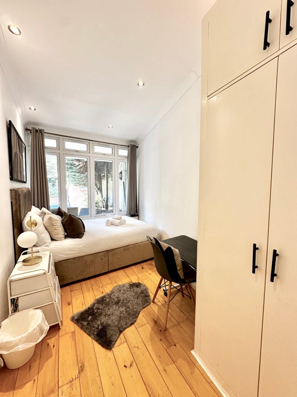 This is a comfortable private room, featuring a double bed, on the ground floor of a shared 5 bedroom house on Gibbon Road, with access to shared spaces including a fully equipped kitchen, TV lounge, and a backyard. The shared bathroom is located outside the room and its access is shared with one other room in the house. There is a dedicated workspace inside the room and free Wifi connectivity throughout the house.