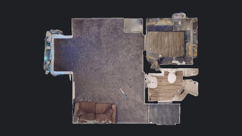 The living area is newly carpeted and comes furnished with a cozy sofa, bed, and wardrobe, offering both comfort and practicality.