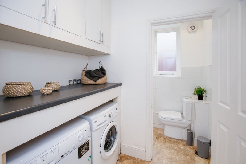 Living room with sofas, tv, washing machine, dishwasher, spacious garden and 1 bathrooms between only 3 of you as the other 3 rooms have an ensuite!