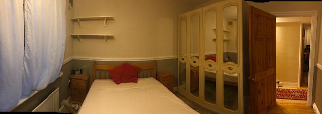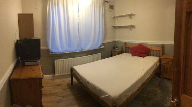 The recently refurbished room has a Double bed, large wardrobe and chest of drawers as well as a desk. There is a private garden at the back of the block.