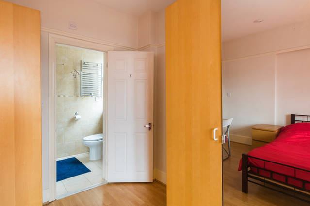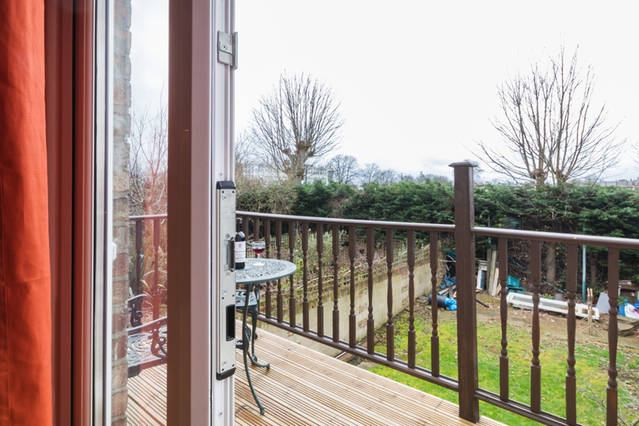 There is a double bed with a table and wardrobe set of draws side table, Use of garden. Overlooking Wasps Rugby training ground.