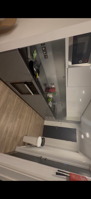 The room is fully furnished with a bed, desk, chair and storage space. There is also a sink in the room, which makes daily use much more convenient. The kitchen is shared and includes a microwave, oven, dishwasher and fridge.